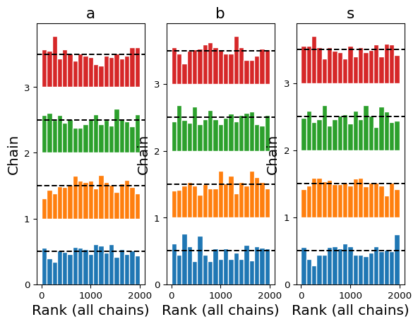 from BI import biimport jax.numpy as jnp# setup platform------------------------------------------------m = bi(platform='cpu')# import data ------------------------------------------------m.data('Howell1.csv', sep=';') m.df = m.df[m.df.age >18]m.scale(data=['weight'])# define model ------------------------------------------------def model(weight, height): a = m.dist.normal( 178, 20, name ='a') b = m.dist.log_normal( 0, 1, name ='b') s = m.dist.uniform( 0, 50, name ='s') m.dist.normal(a + b * weight , s, obs=height, shape=(weight.shape[0],))# Run sampler ------------------------------------------------m.fit(model, num_samples=500,num_chains=4) m.summary()